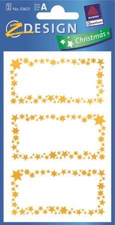 Opakowanie zawiera 2 blisterki, na każdym 3 szt. ozdobionych złotymi gwiazdkami naklejek do podpisywania prezentów lub pisania życzeń.