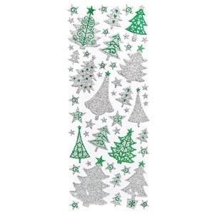 Naklejki brokatowe ornamentowe - choinki SILVER&GREEN, 53szt