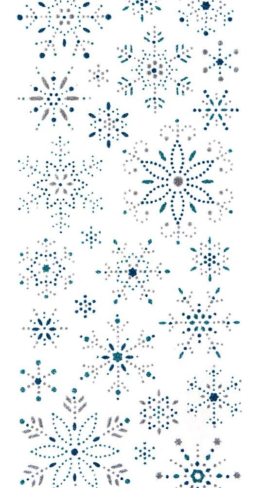 Brokatowe naklejki z ornamentowym wzorem śnieżynek nadadzą prawdziwego blasku zimowo-świątecznym projektom.
