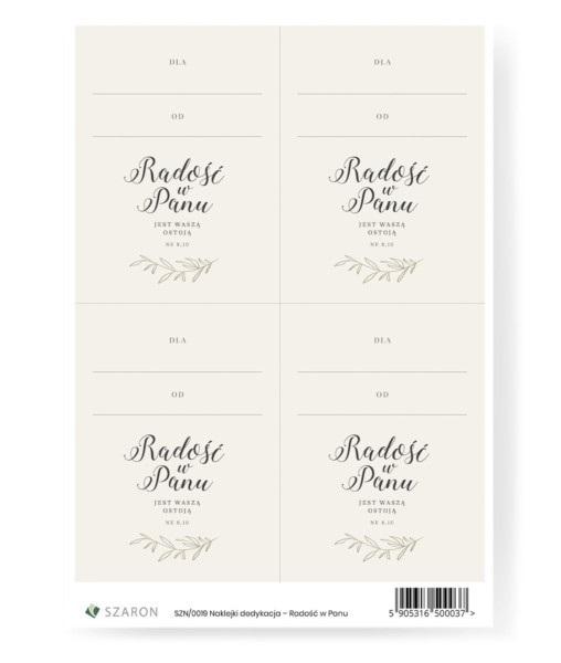 Opakowanie Naklejki dedykacyjne - Radość w Panu