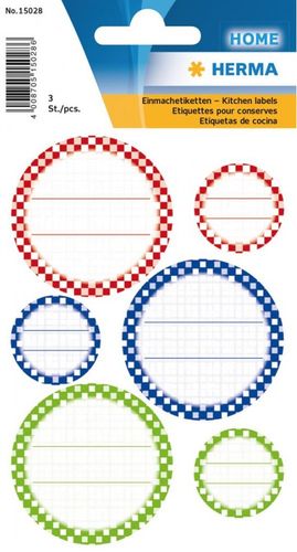 Naklejki do ozdabiania, opisywania, znakowania np. przetworów. 1 opakowanie zawiera 3 blistry naklejek 8,5 x 12 cm.
