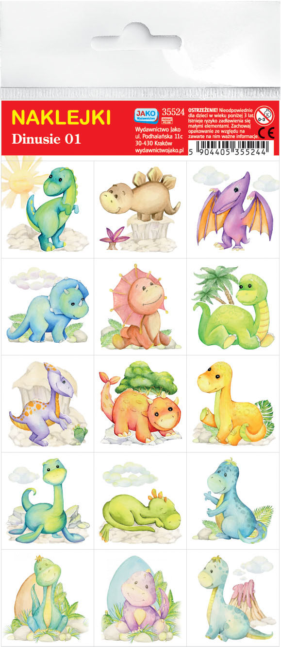 Zestaw 15 naklejek samoprzylepnych z dinusiami idealnie nadaje się do wykorzystania przy wszelkich pracach kreatywnych. Naklejkami można ozdobić kartki okolicznościowe, prezenty, notesy, zeszyty i pudełka. Sprawdzą się również jako nagrody motywacyjne.