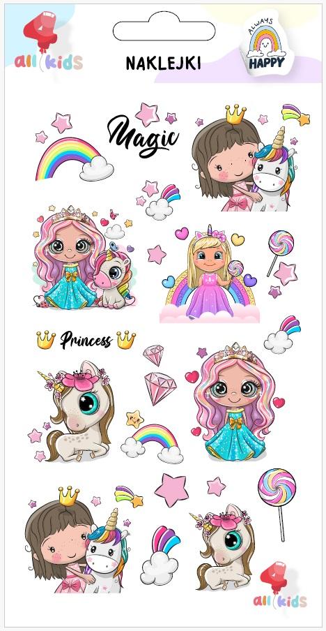Opakowanie Naklejki dla dzieci Księżniczki jednorożce