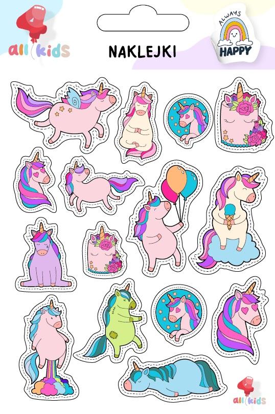 Opakowanie Naklejki dla dzieci Tęczowe jednorożce
