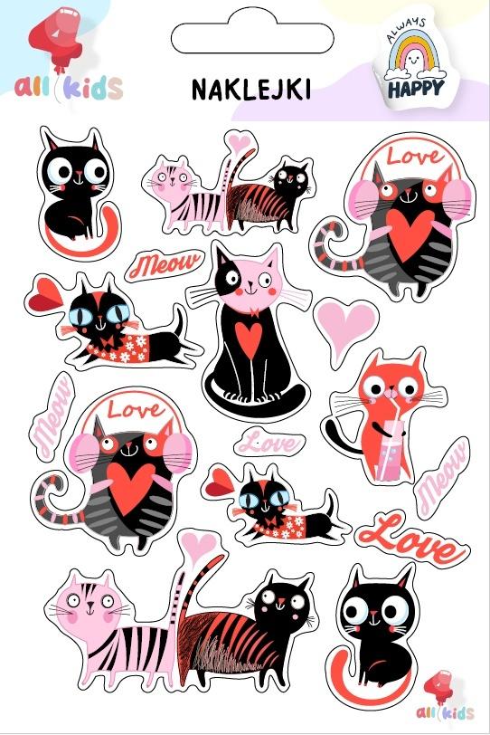 Opakowanie Naklejki dla dzieci Walentynki 3 Kotki