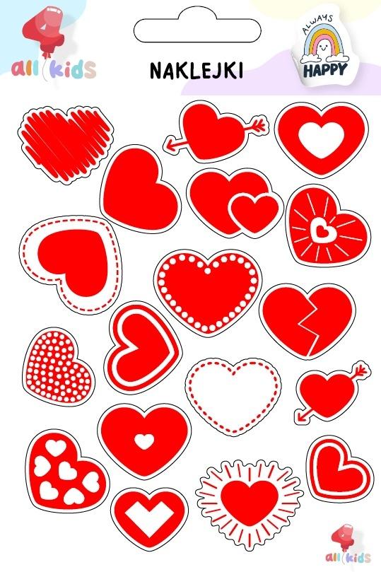 Opakowanie Naklejki dla dzieci Walentynki 4 Serca