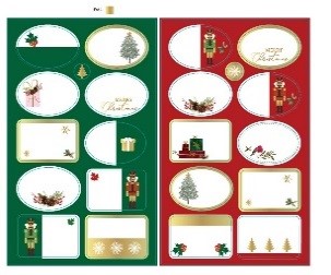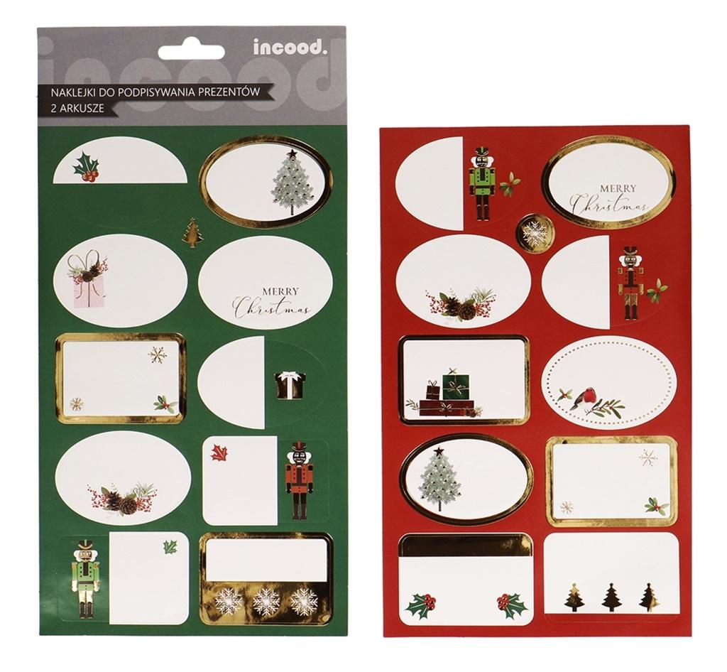 Opakowanie Naklejki do podpisywania prezentów / 2 arkusze. Czerwony/zielony