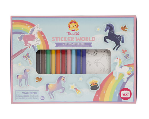 Zestaw zawiera 4 tła, 2 plansze z naklejkami do kolorowania i 10 flamastrów. Piękne koniki i jednorożce spodobają się każdej dziewczynce – tym bardziej, jeśli sama może je pokolorować! Tiger Tribe to marka pełna pomysłowych kreatywnych zestawów idealnych na podróż. Wszystkie pakowane są w solidne pudełka, które nie zajmują dużo miejsca i zwykle są zamykane na magnes. Ich zawartość np. notesiki są trwale przymocowane w środku opakowania, a naklejki, kredki itp. mają swoje miejsce w wewnętrznym pudełeczku.