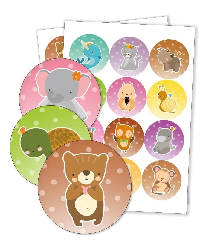 Naklejki do szafki - Zwierzaki z tłem 60mm 24szt.