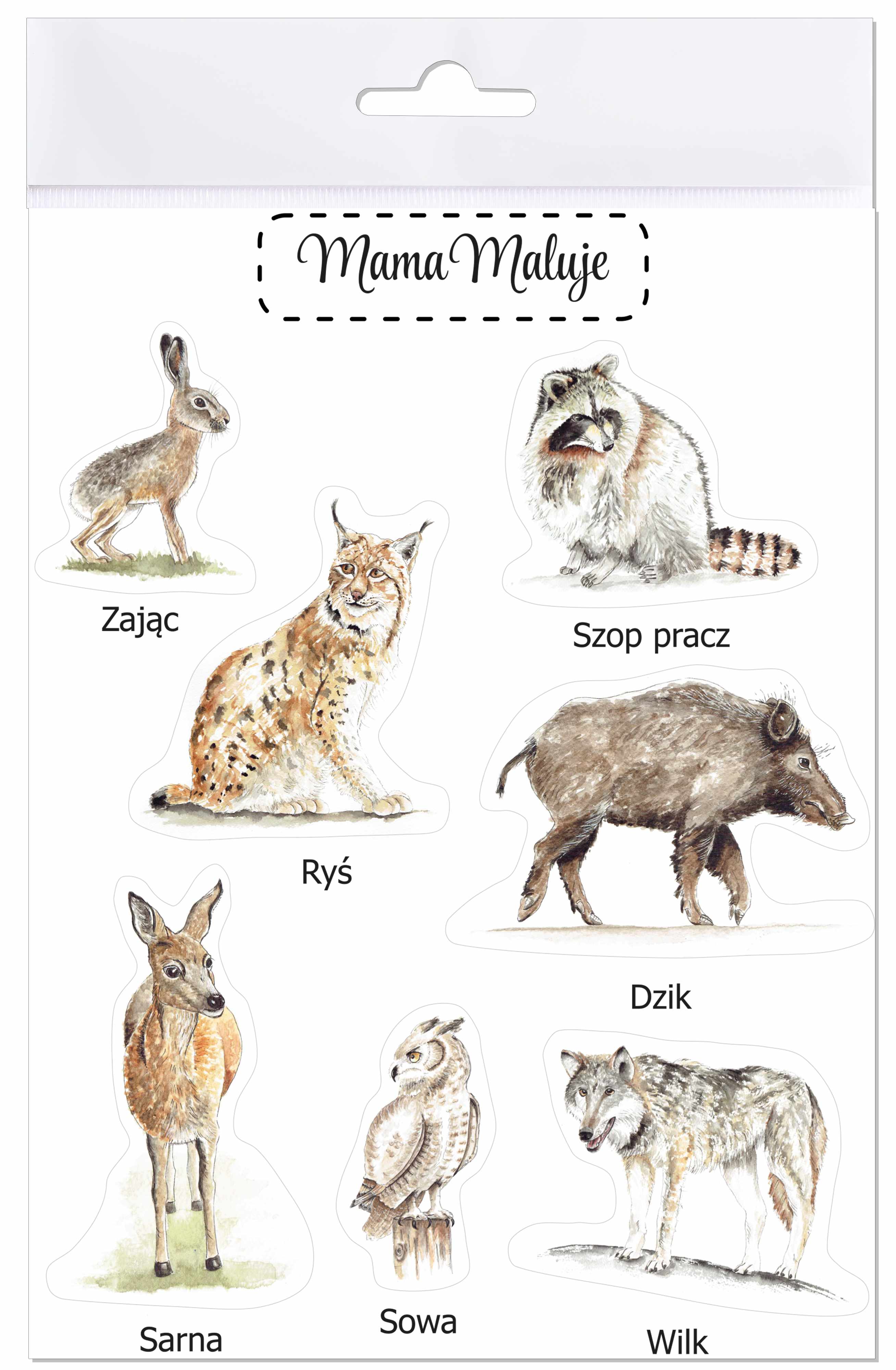 Naklejki przedstawiają realistyczne ilustracje zwierząt.