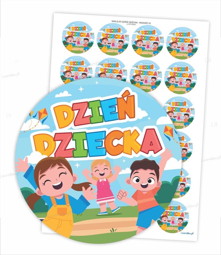 Opakowanie Naklejki Dzień Dziecka - Radość 40mm 24szt