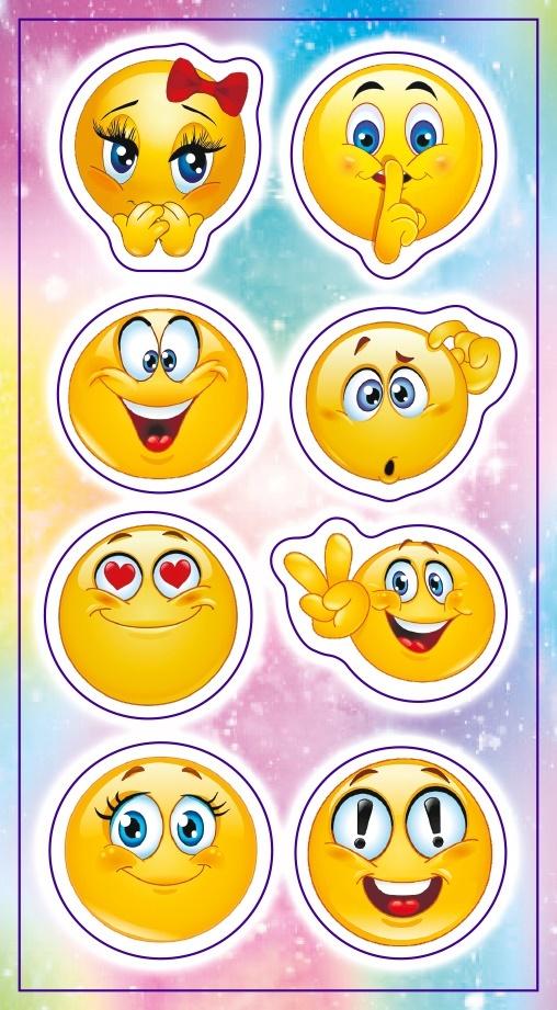 Zestaw naklejek do ozdoby zeszytów, albumów, listów, pocztówek ... 12 emotikonów.