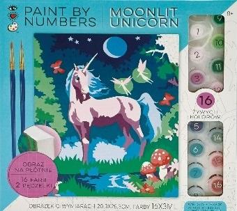 Zestaw zawiera: płótno malarskie o grubości 3,2 cm do postawienia lub powieszenia 16 farb w żywych kolorach 2 pędzelki: do detalu super precyzyjny instrukcja Wiek: 8+