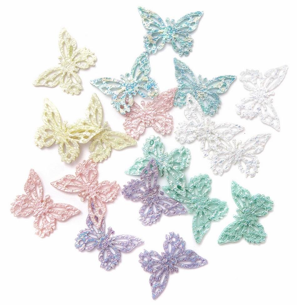 Ażurowe motylki samoprzylepne z filcu, pokryte opalizująca powłoką, w pastelowych odcieniach.Idealnie nadają się do ozdabiania okolicznościowych projektów kreatywnych typu scrapbooking (albumy, pudełka, pakowane prezentów) czy home decor oraz wielu innych.Doskonale sprawdzą się przy wszelkiego rodzaju dziecięcej aktywności twórczej.