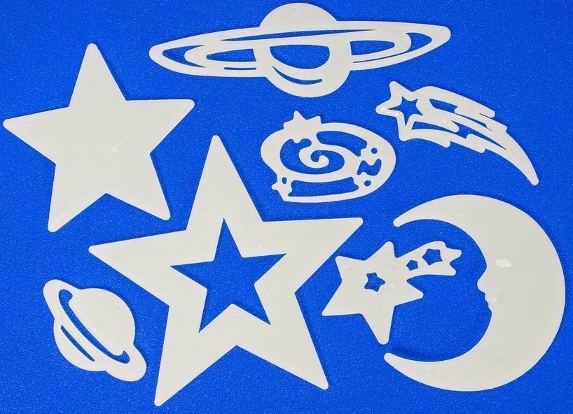 świecące naklejki do dekoracji, materiał sam absorbuje energię świetlną w ciągu dnia i dzięki temu może świecić w nocy, 9 szt.