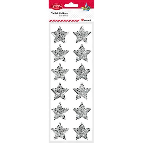 Opakowanie Naklejki foliowe gwiazdki 40mm srebrne 12szt.