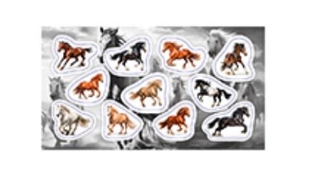 Zestaw naklejek do ozdoby zeszytów, albumów, listów, pocztówek ... 11 naklejek przepięknych koni rożnych maści w galopie POLECANE DO SZKÓŁ