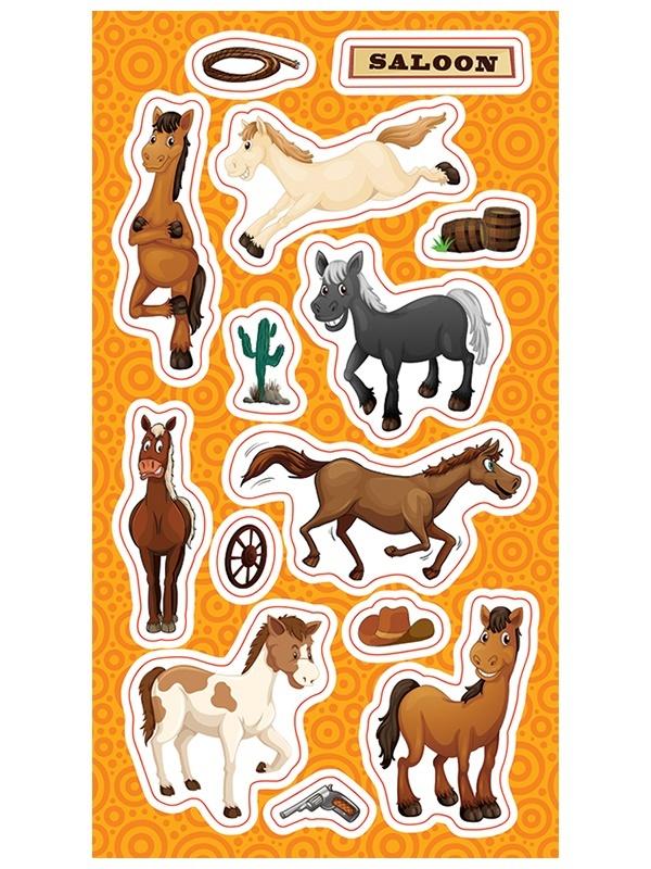 Zestaw naklejek do ozdoby zeszytów, albumów, listów, pocztówek - 7 dzikich koni i 7 ozdobników.