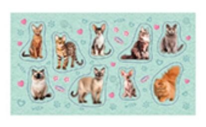 9 naklejek z milutkimi kotkami rożnych ras. Zestaw naklejek do ozdoby zeszytów, albumów, listów, pocztówek ...