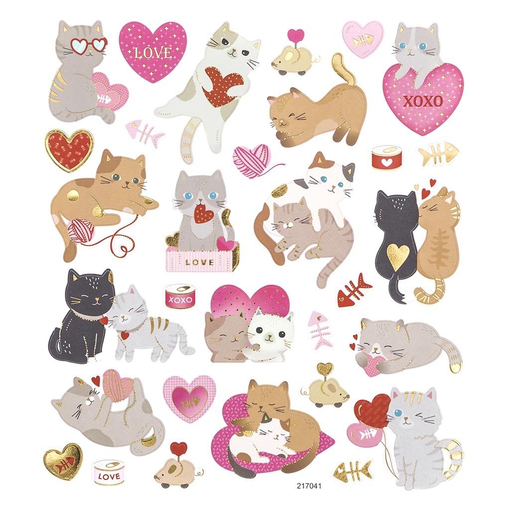 Papierowe naklejki ze złoceniami w kształcie zabawnych kotków, to świetny dodatek do kreatywnych zabaw z dziećmi. Doskonale nadają się do zdobienia projektów scrapbookingowych, kartek okolicznościowych, pakowania prezentów i innych. W opakowaniu: 31 sztuk.