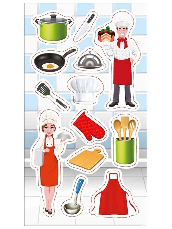 Zestaw naklejek do ozdoby zeszytów, albumów, listów, pocztówek ... 13 naklejek związanych z pracą kucharza. POLECANE DO SZKÓŁ