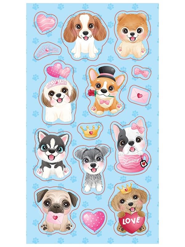 Zestaw naklejek do ozdoby zeszytów, albumów, listów, pocztówek - 9 małych piesków i 6 ozdobników.