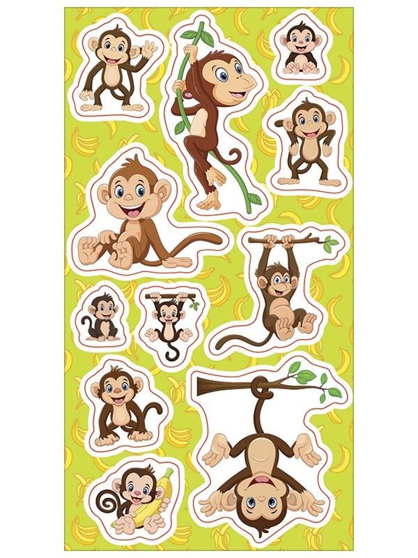 Zestaw naklejek do ozdoby zeszytów, albumów, listów, pocztówek ... 11 naklejek z figlującymi małpkami
