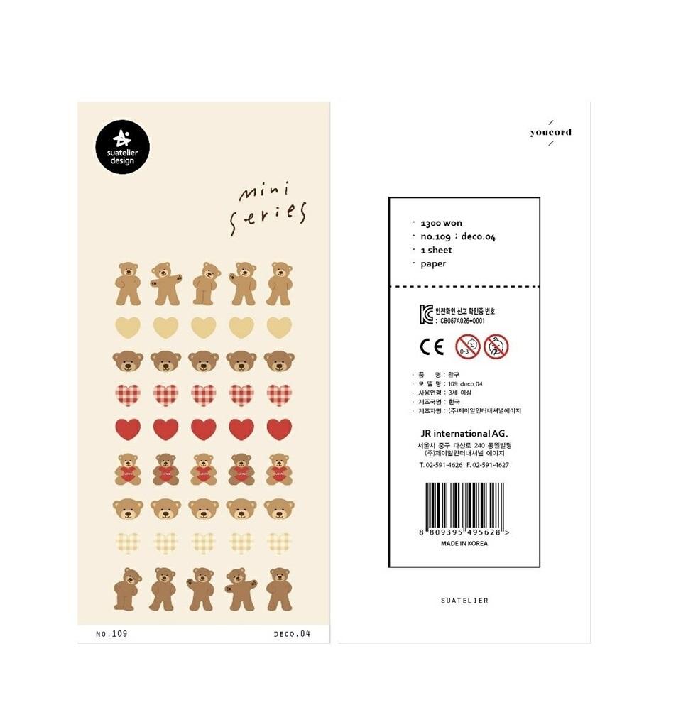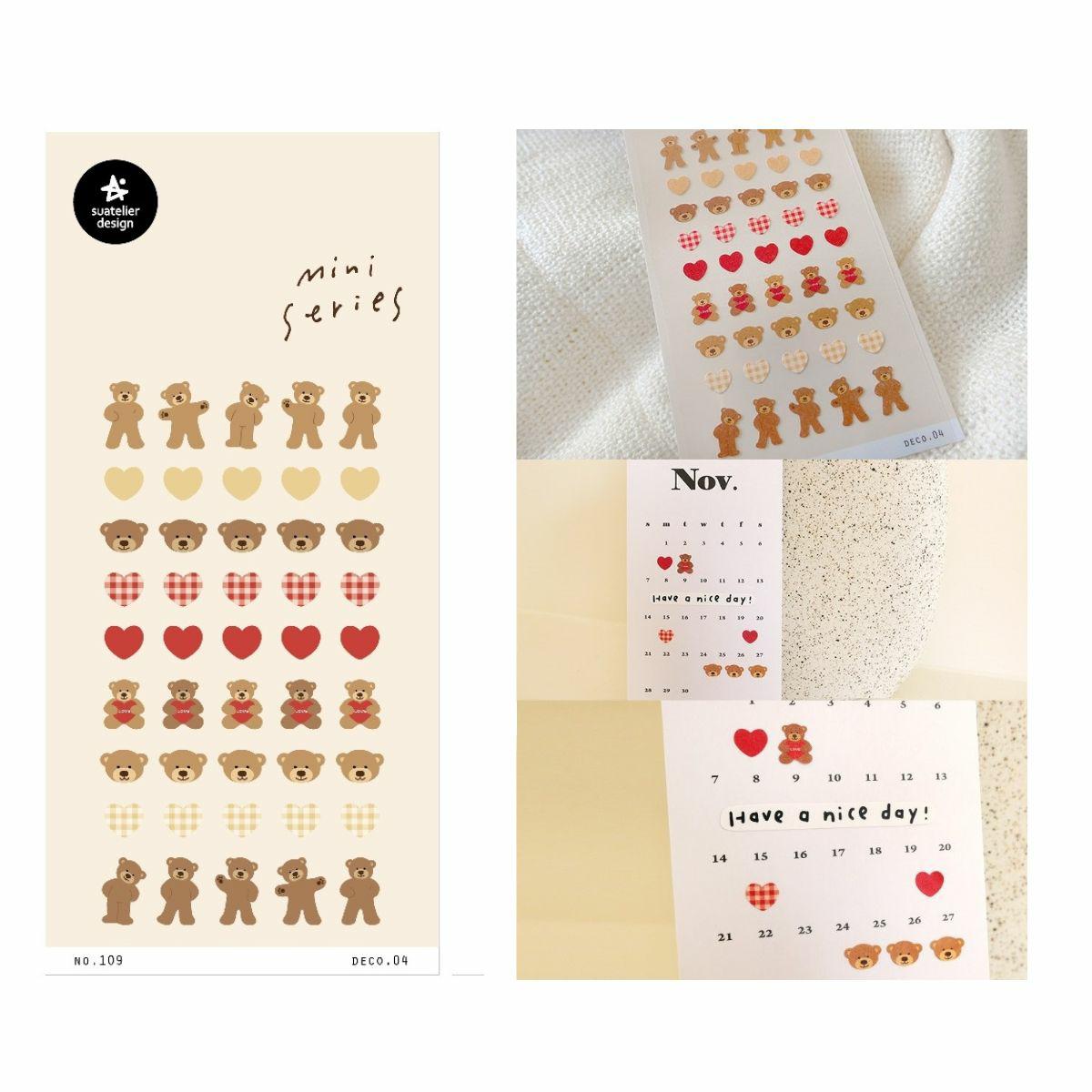 "Naklejki MINI Pluszowy Miś koreańskiej marki Suatelier.