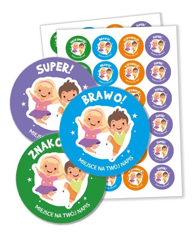 Zestaw 48 naklejek motywacyjne ze uśmiechniętymi dziećmi idealne jako pochwała za wykonane zadanie.
