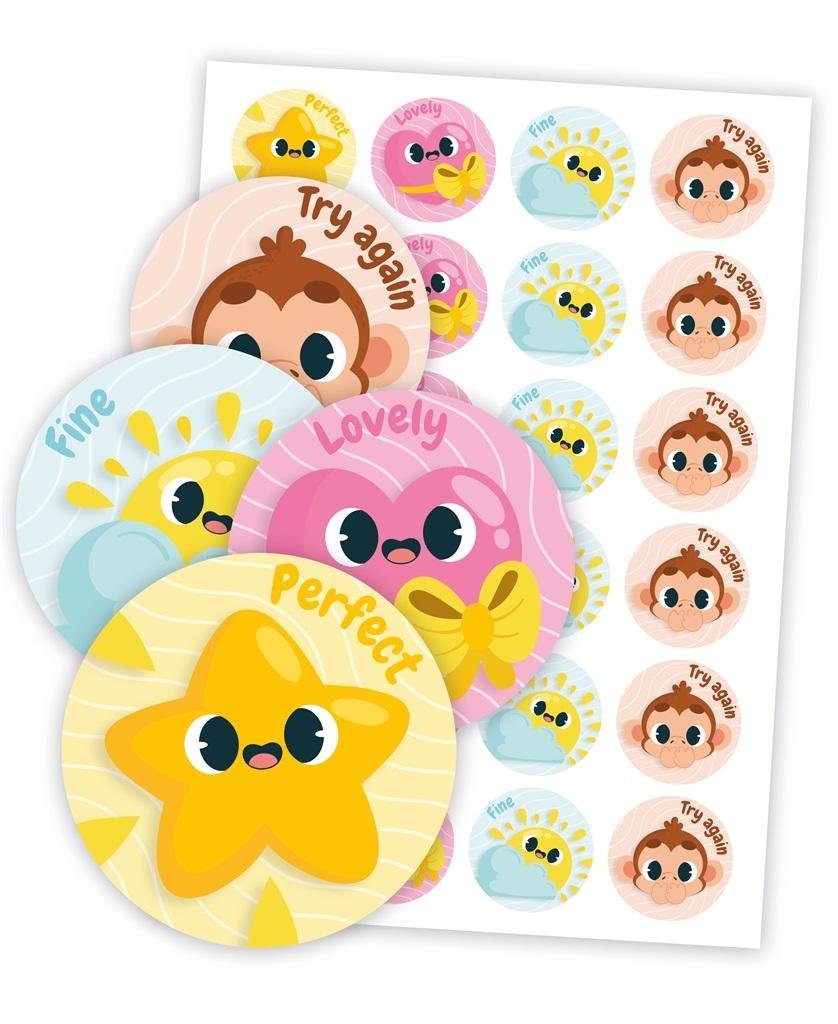 Zestaw 48 naklejek dla uczniów w motywie kolorowych i słodkich emotek.