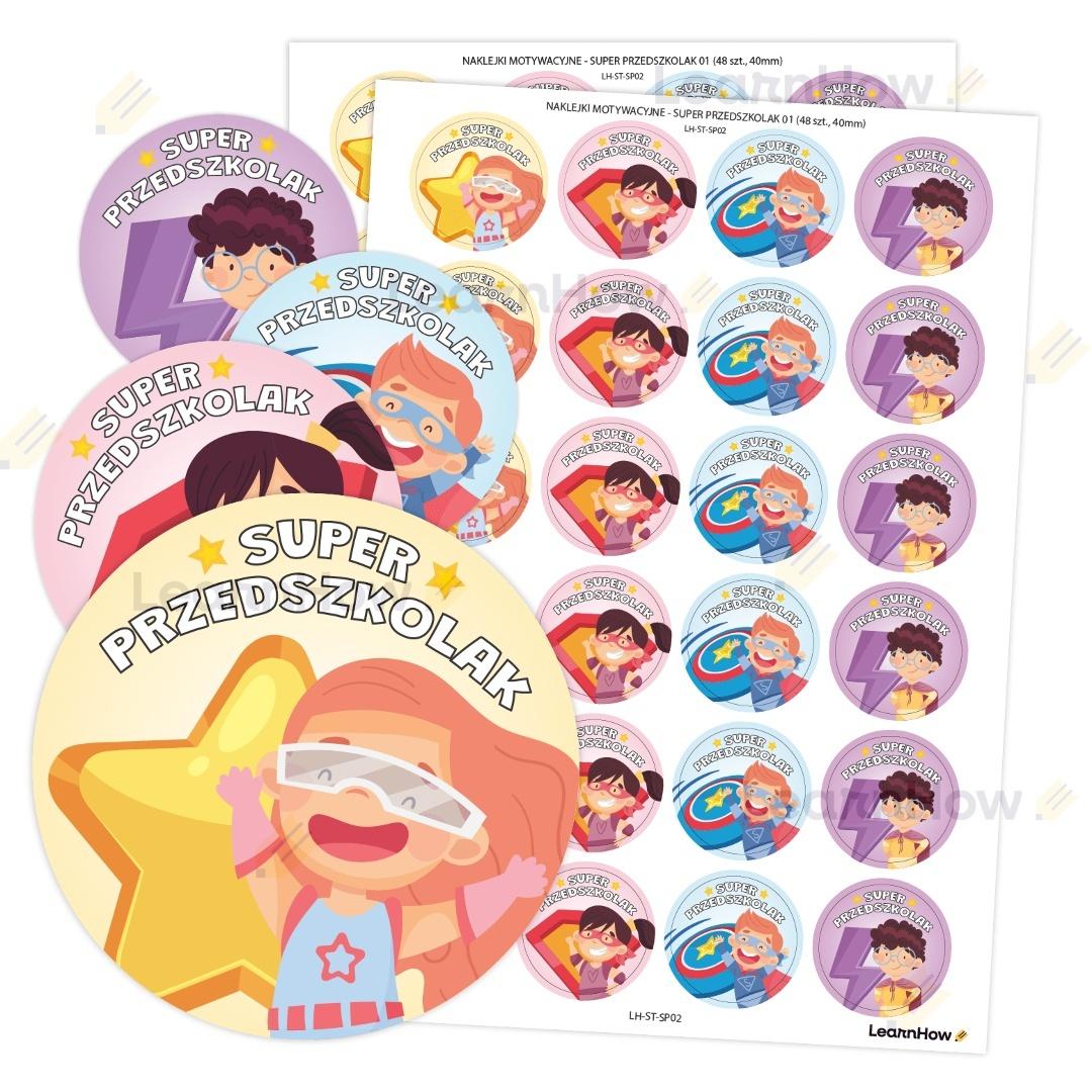 Zestaw 48 naklejek dla przedszkolaków ze uśmiechniętymi super dziećmi, idealny jako nagroda dla przedszkolaka!
