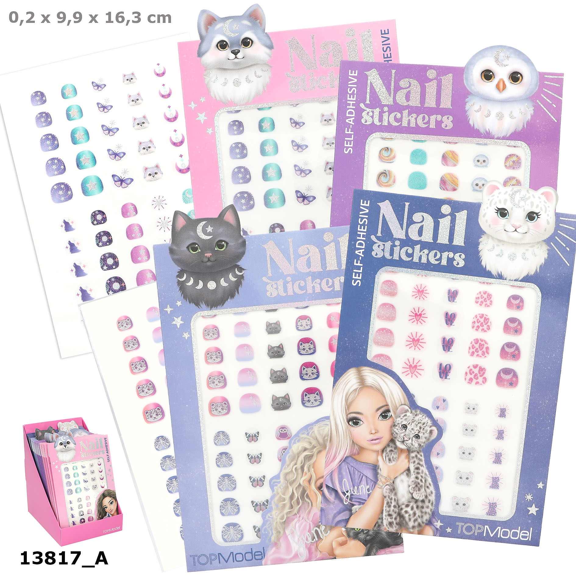 Naklejki na paznokcie TOPModel na dłonie i stopy, z brokatowymi elementami, 100 sztuk, 4 wzory, wiek 6+