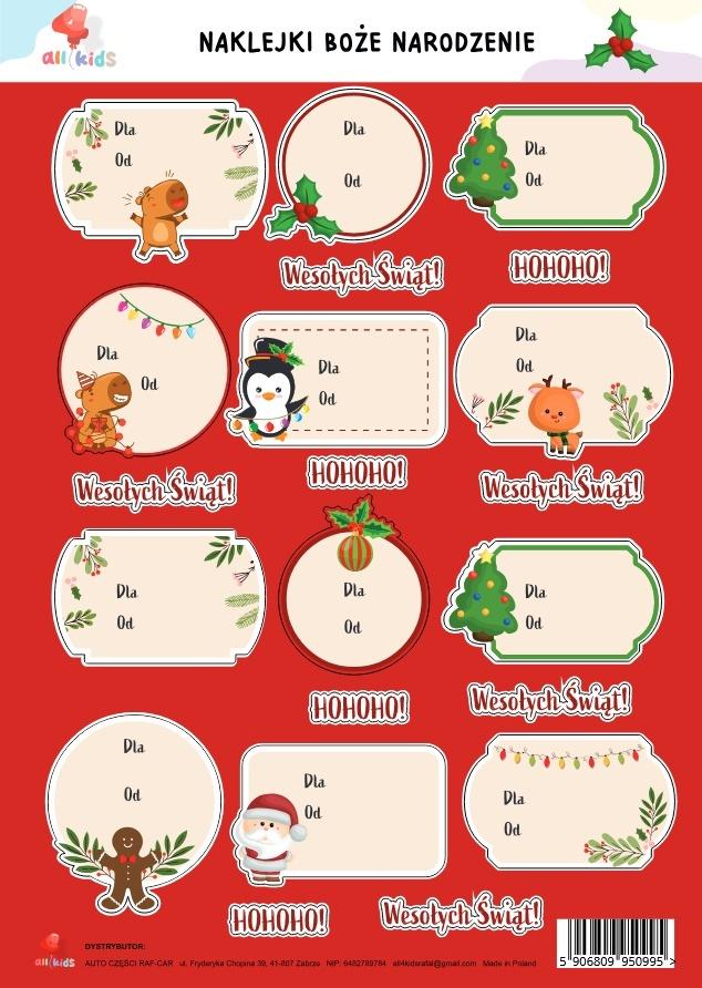 Opakowanie Naklejki na prezenty Boże Narodzenie A4