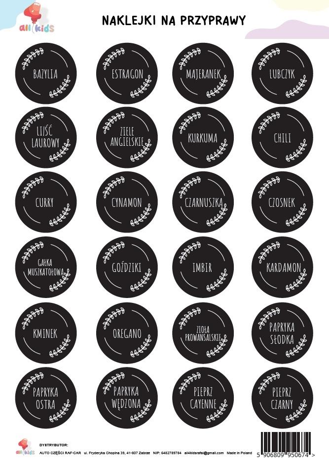 Możliwość personalizacji - napisz własne nazwy przypraw na pustych naklejkach!