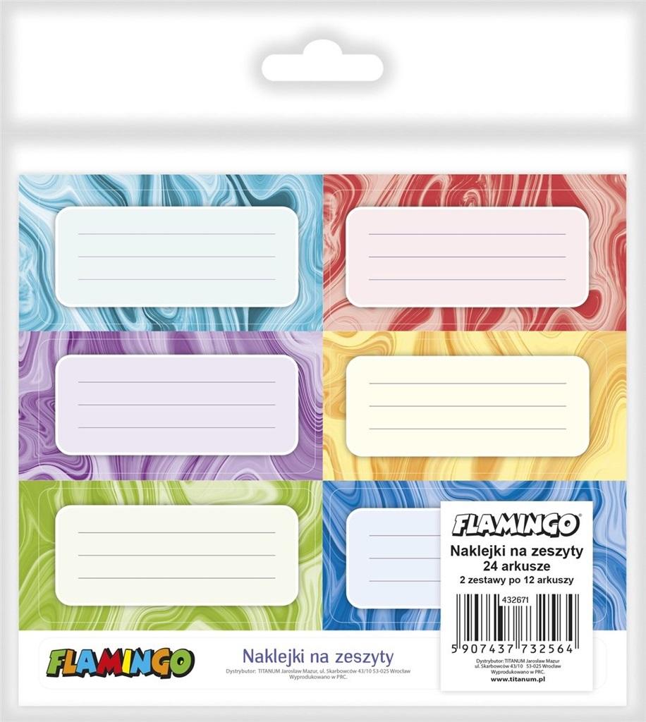 Naklejki na zeszyt kolorowe małe, wymiary: naklejka 35x73 mm, arkusz 160x140 mm, 6 naklejek na arkuszu, w opakowaniu 24 arkusze