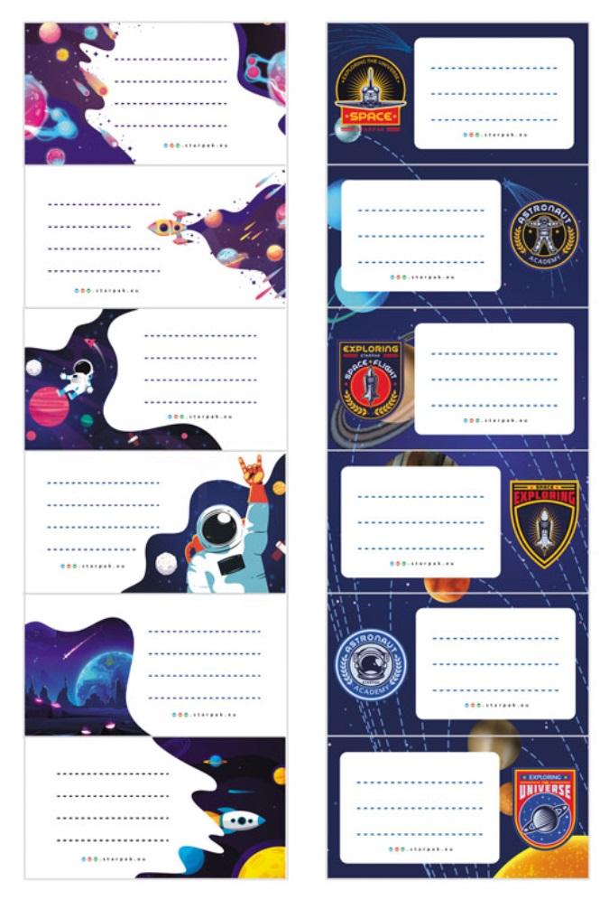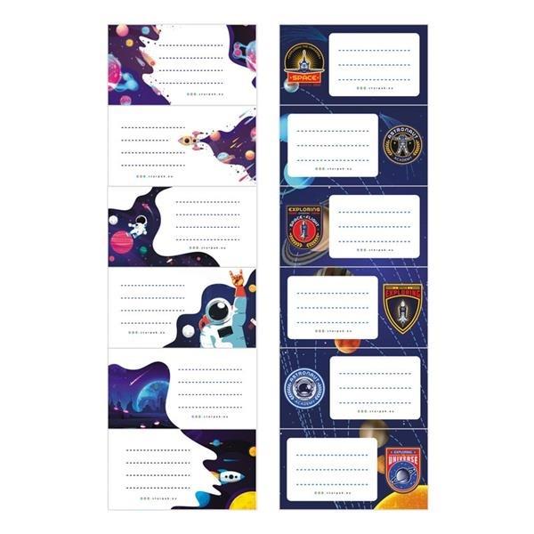 Naklejki na zeszyt Kosmos, 25 sztuk w opakowaniu.