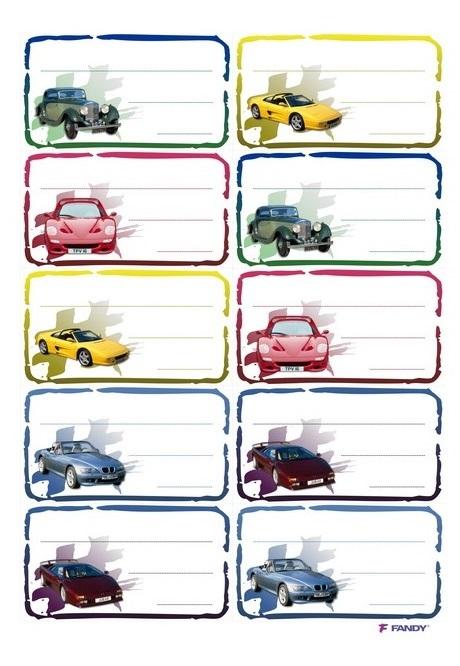 Papierowe naklejki do oznaczania przyborów szkolnych, 1 arkusz zawiera 10 plakietek imiennych, wielkość arkusza 15 x 21 cm