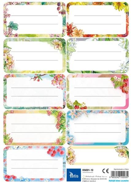 Naklejki na zeszyty i książki z zaokrąglonymi rogami, łatwo usuwalne. Na arkuszu znajduje się 9 etykiet. Jednostka sprzedaży: folia 25 arkuszy.