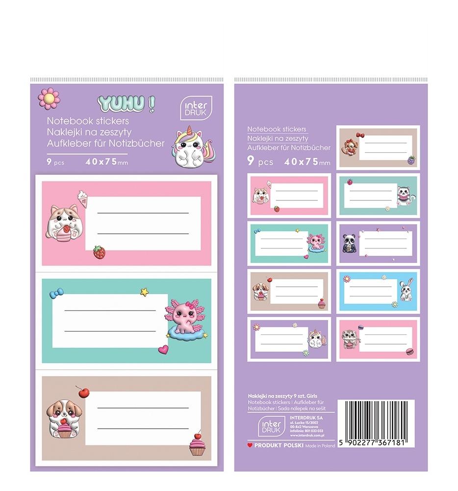Opakowanie Naklejki na zeszyty Girls 9szt