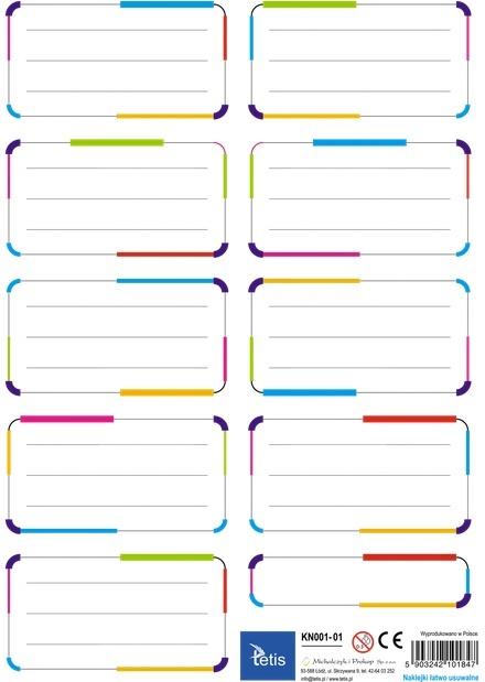 Naklejki na zeszyty i książki KN001-01 25ark., Tetis