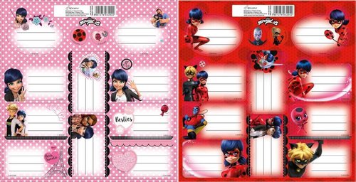 Naklejki na zeszyty Miraculum Biedronka i Czarny Kot 25 sztuk