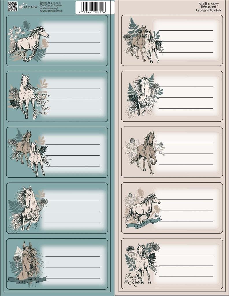 Naklejki na zeszyty. Na arkuszu znajduje się 10 sztuk kolorowych etykiet z serii Nice&Pretty. Gwarantują idealny sposób na oznaczenie zeszytów oraz podręczników dla dzieci i nastolatków. 2 wzory.