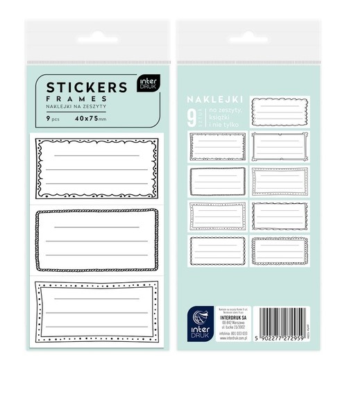 Opakowanie Naklejki na zeszyty Ramki 9 sztuk 12 blistrów