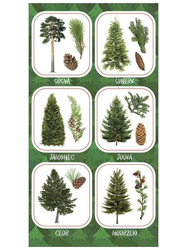 Zestaw naklejek do ozdoby zeszytów, albumów, listów, pocztówek ... 6 naklejek z drzewami iglastymi i ich owocami. POLECANE DO SZKÓŁ