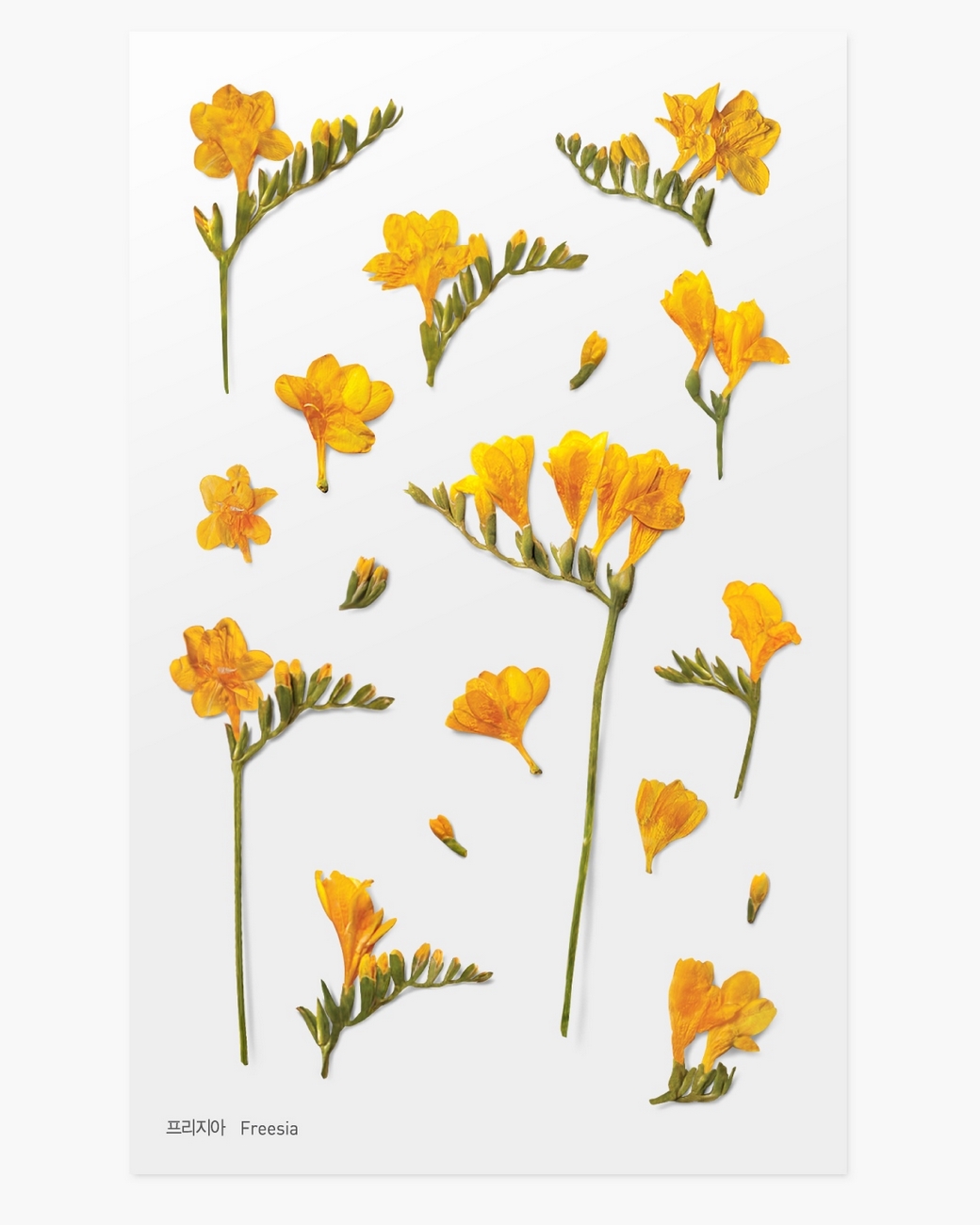 Naklejki ozdobne kwiaty Frezja. Niezwykle realistyczne naklejki, które doskonale odwzorowują zasuszone rośliny. Zostały wykonane z tworzywa PET zapewniającego wysoką trwałość i precyzyjne kształty. Perfekcyjne cieniowanie i matowe wykończenie dają naturalny efekt po naklejeniu. Wykorzystasz je w domu, biurze, w planerach, książkach. W fantastyczny i kreatywny sposób można je również wykorzystać do scrapbookingu oraz bullet journalingu.