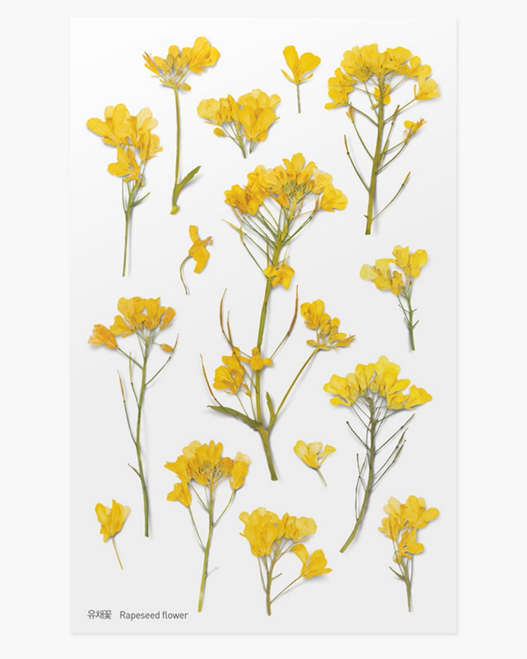 Naklejki ozdobne kwiaty Rzepak. Niezwykle realistyczne naklejki, które doskonale odwzorowują zasuszone rośliny. Zostały wykonane z tworzywa PET zapewniającego wysoką trwałość i precyzyjne kształty. Perfekcyjne cieniowanie i matowe wykończenie dają naturalny efekt po naklejeniu. Wykorzystasz je w domu, biurze, w planerach, książkach. W fantastyczny i kreatywny sposób można je również wykorzystać do scrapbookingu oraz bullet journalingu.