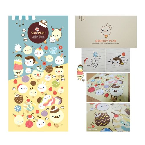 Naklejki ozdobne Lody koreańskiej marki Suatelier Piękne i oryginalne naklejki samoprzylepne, które mogą być używane do ozdabiania notesów, kalendarzy, planerów, telefonów, kartek i wielu innych produktów. Szeroka gama motywów, od prostych i eleganckich do bardziej fantazyjnych i kolorowych pozwala na dopasowanie naklejki do indywidualnego stylu i gustu, nadając osobisty akcent oraz unikalność. Wykonane z wysokiej jakości materiałów oraz drukowane za pomocą nowoczesnych technologii, aby zapewnić trwałość i żywe kolory. Naklejki wykonane z matowego powlekanego papieru. Wymiar arkusza 10x19 cm.