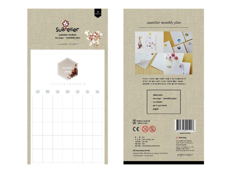 "Naklejki ozdobne Planer miesięczny 12szt koreańskiej marki Suatelier.