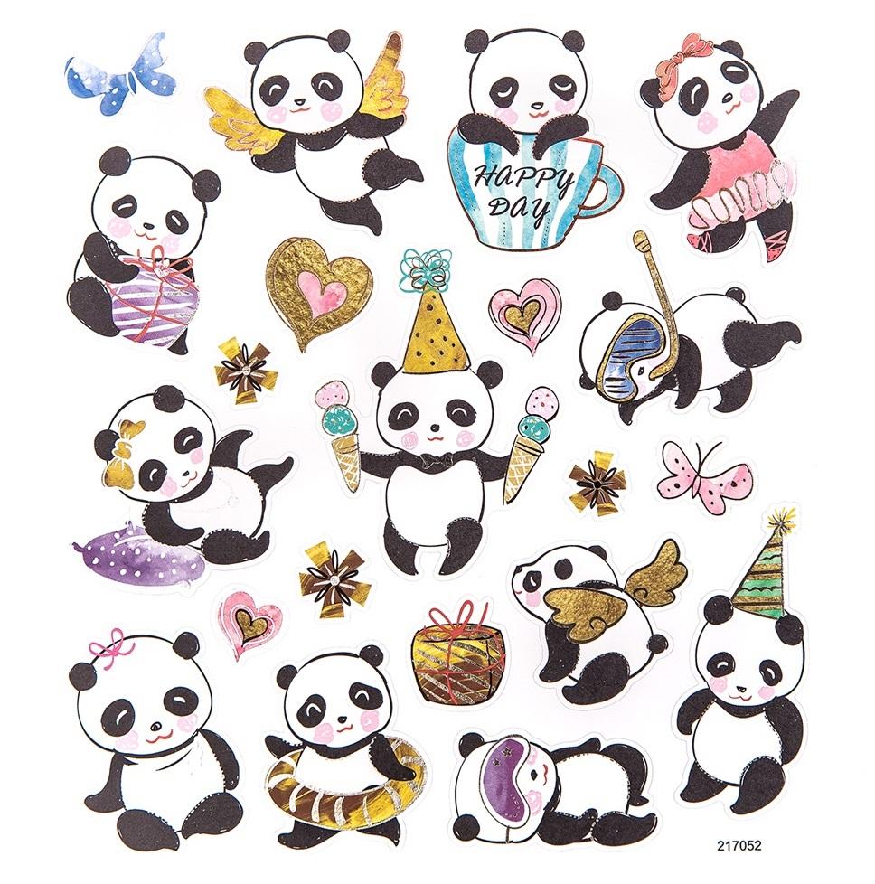 Papierowe naklejki z motywem uroczej pandy doskonale nadają się do wszelkiego rodzaju dziecięcej aktywności twórczej, jak również do zdobienia projektów typu cardmaking, scrapbooking, opakowania prezentów i innych. W opakowaniu: 1 blister - 21 naklejek