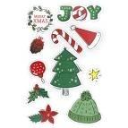 Naklejki papierowe 10 plansz napis Joy, wianek, choinka, czapki, bombki